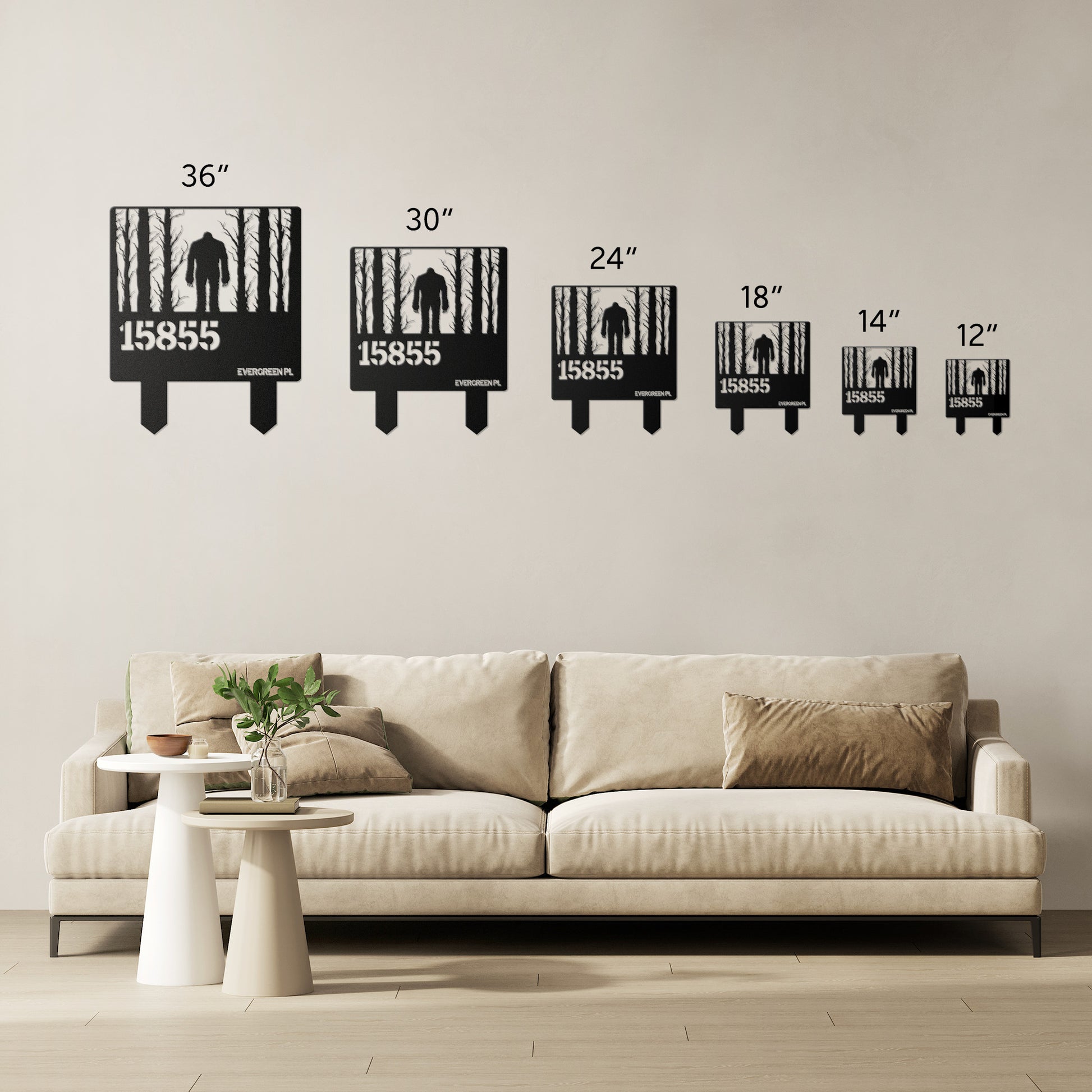 • 6 Sizes - 36", 30", 24", 18", 14", 12" *Selected size is based on the maximum height or width of the sign depending on physical orientation