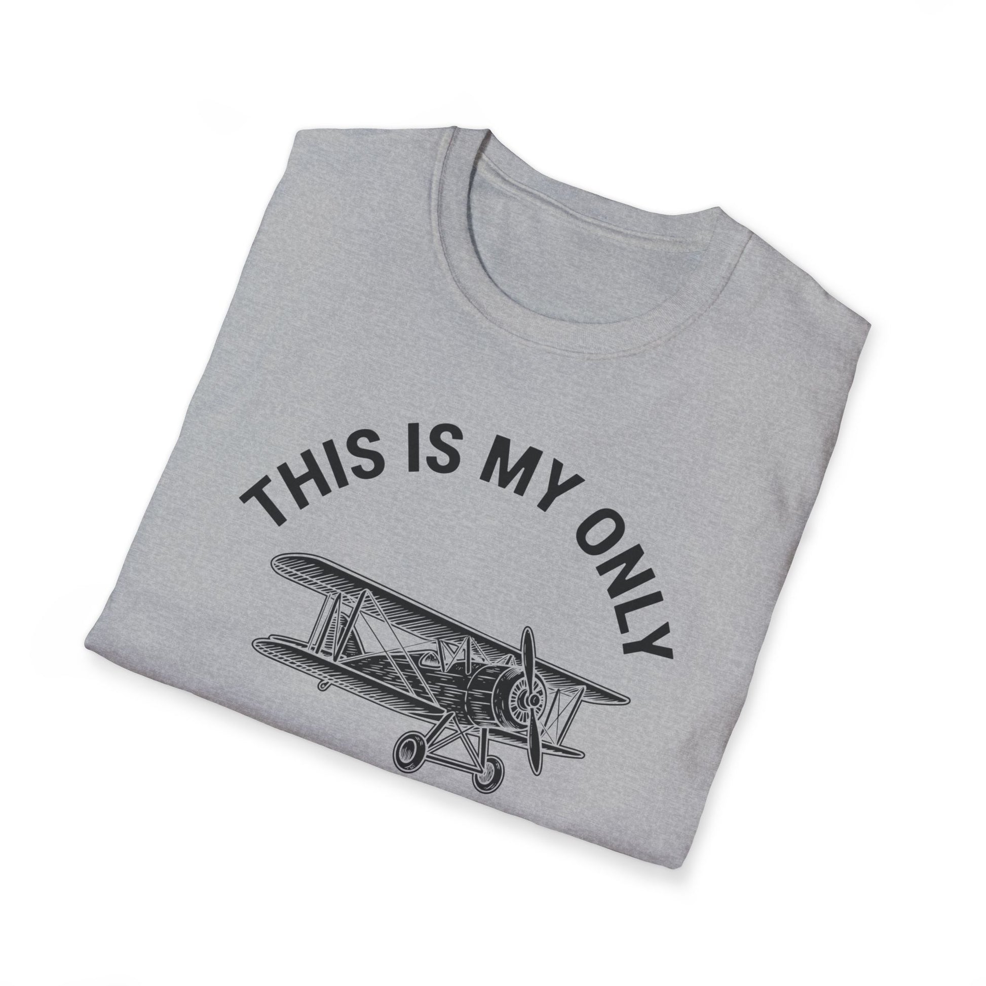 Take your passion for flight and wanderlust to new heights with our “This is my only plane t-shirt” aviation tee.